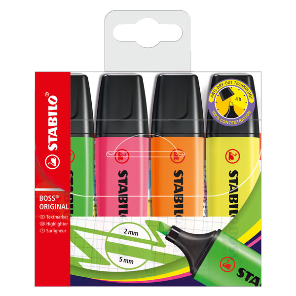 Stabilo Boss Original Highlighters Assorted Colours Pack of 4